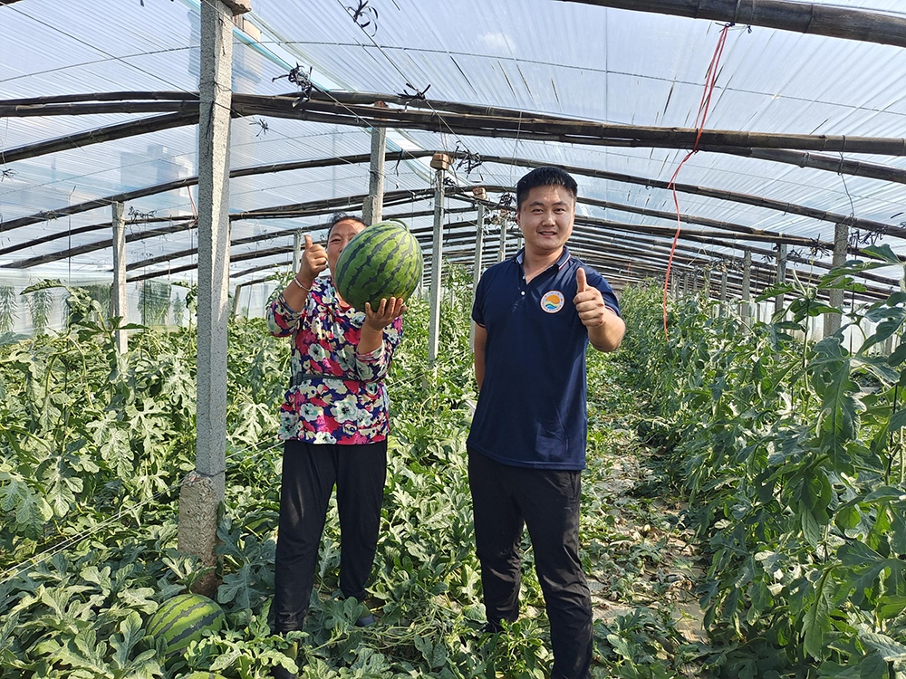 说起种植经验,已经种了多年西瓜的董大姐认为:想要种出好的瓜,一定要舍得投入,前期好的棚舍设施是一方面,好肥料是植物的营养来源,更是要选性价比高、有效果的肥料。她已经使用海状元海藻肥套餐3年,公司针对西瓜种植的全程套餐针对作物不同阶段的营养需求,提供有针对性的营养,使用起来十分省心、方便,最重要的是有效果。经过几年观察对比,董大姐发现:使用海状元海藻肥确实能有效改良土壤、提高西瓜的抗病与抗逆能力、提升西瓜的品质与产量,种了9亩地西瓜、产量能近10万斤。这不,董大姐家的西瓜产量大、个头重、还甜度高,卖的单价自然比别人家高出不少,胜利摘取瓜王桂冠,自然也不在话下。